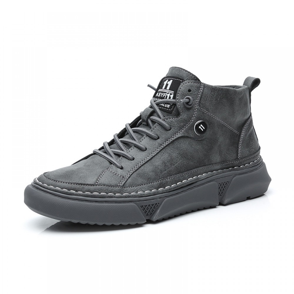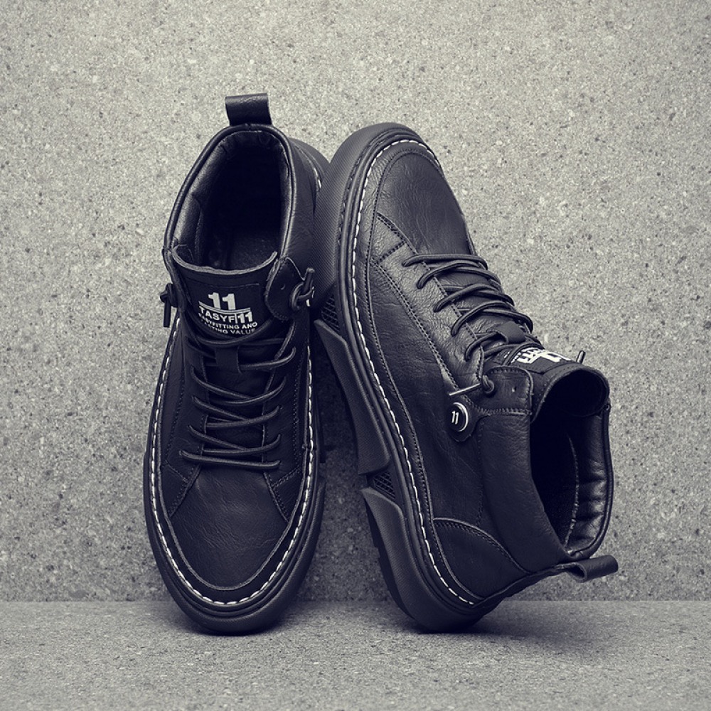 White Men's Autumn New Flat Bottom Shoes Leather High Top Casual Shoes