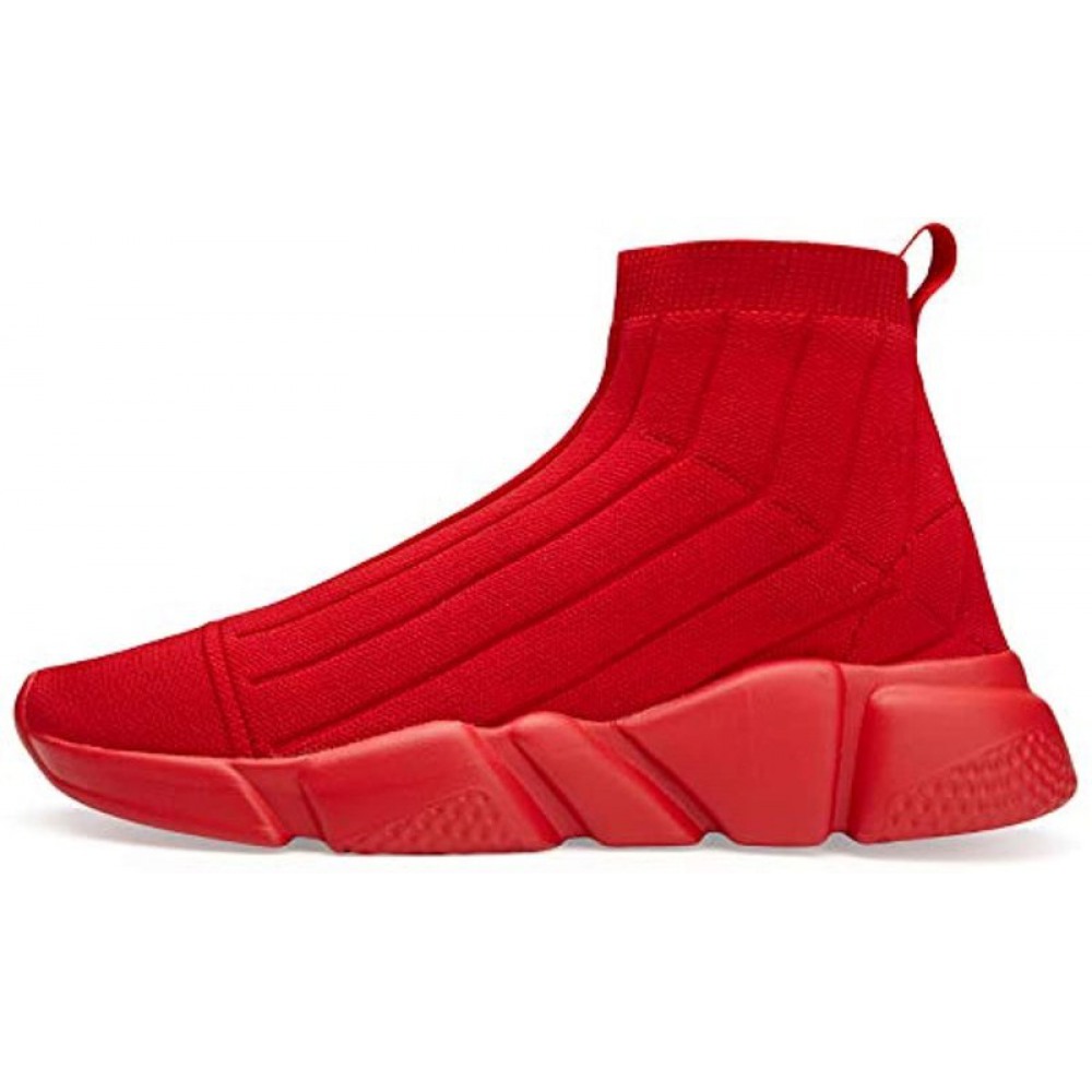 Men's Running Shoes Breathable Knit Slip On Sneakers Lightweight Athletic Shoes Casual Sports Shoes All Red