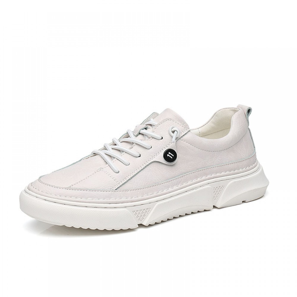 Men's Spring New Trendy Leather Casual White Sports Shoes