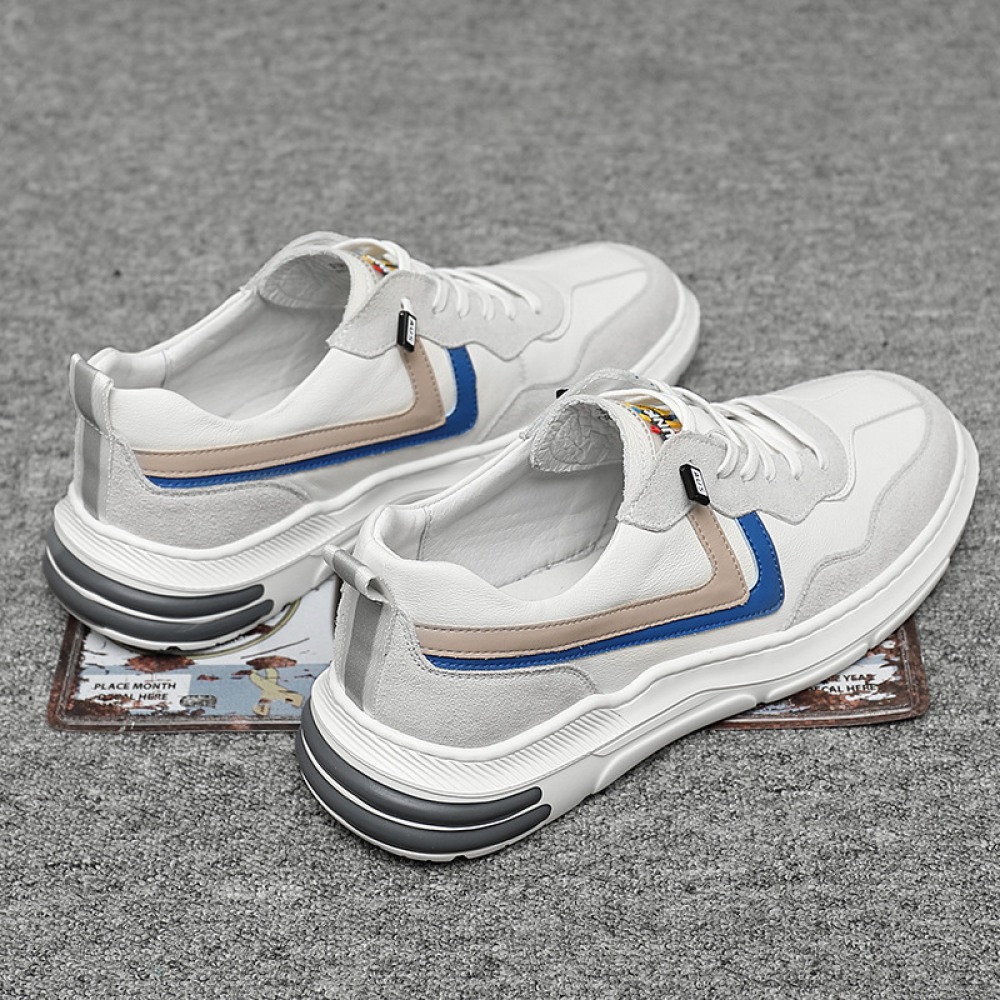 Men's Spring New Trendy Leather Casual White Sports Shoes