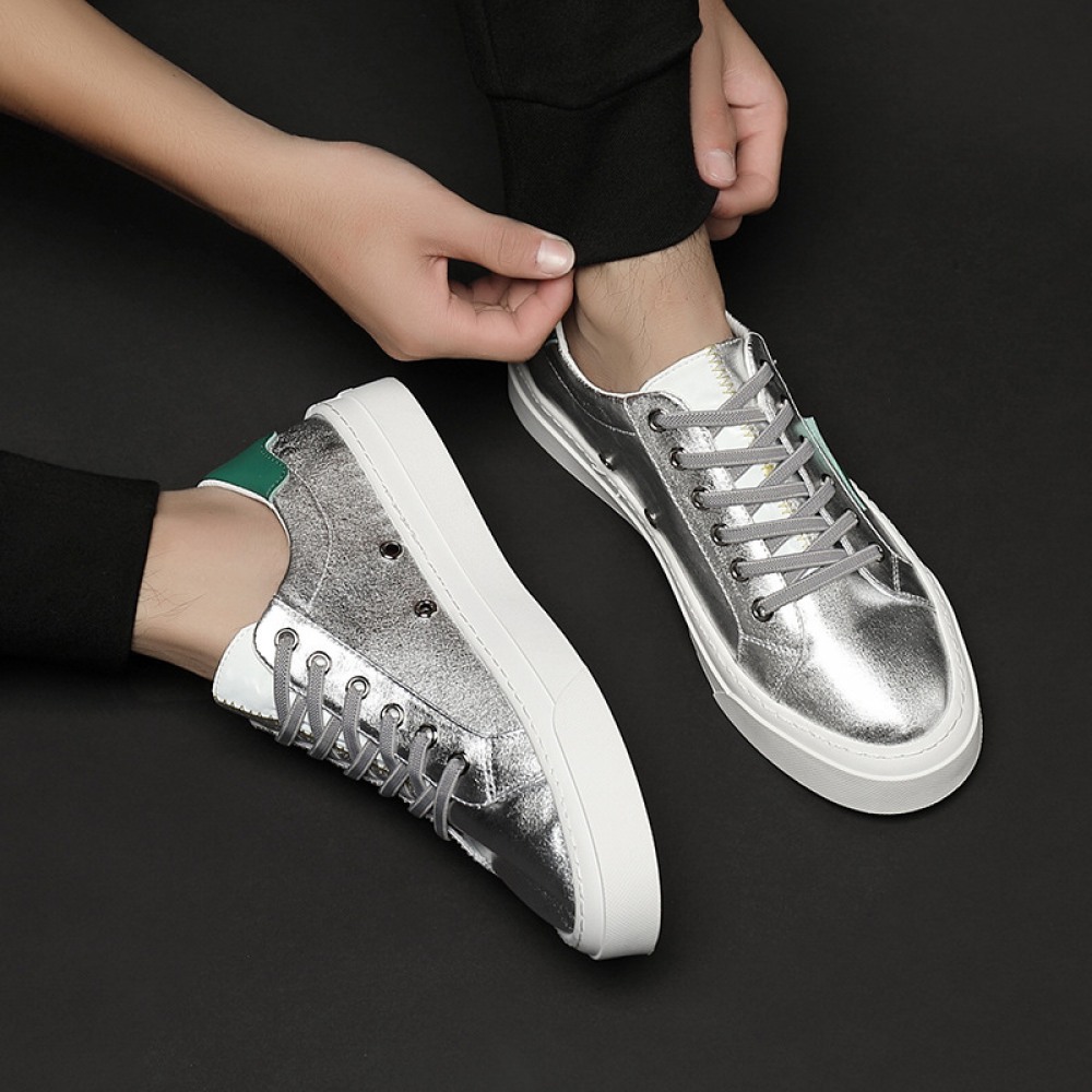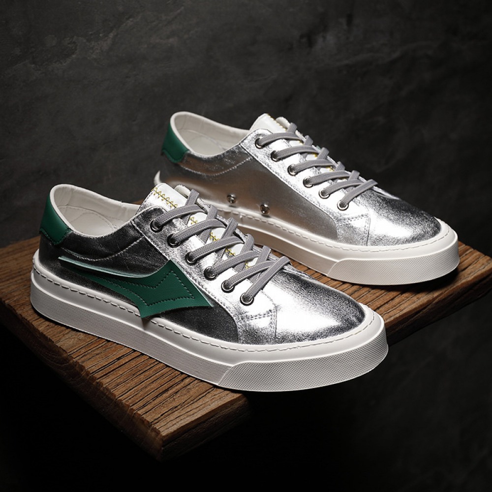 Men's Leather Board Shoes Trendy White Casual Shoes