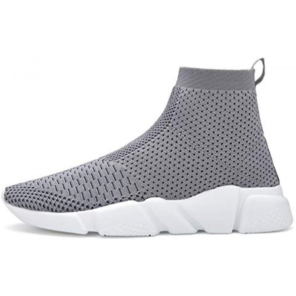 Men's Breathable Knit Slip On Sneakers Lightweight Athletic Casual Sports Shoes High Top All Grey